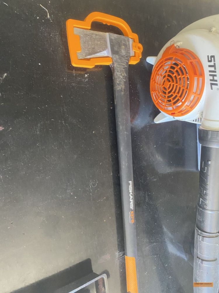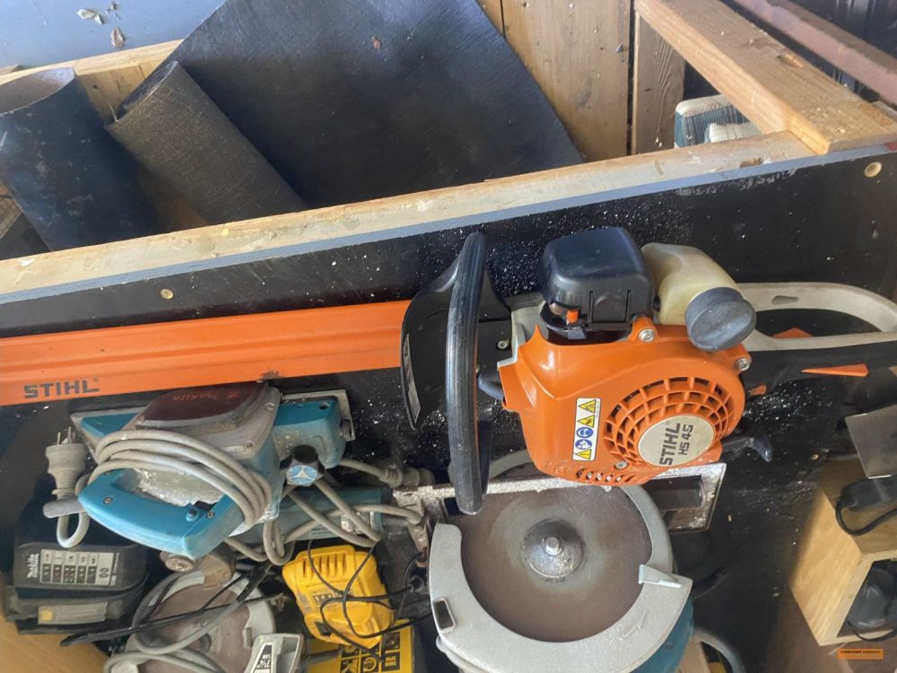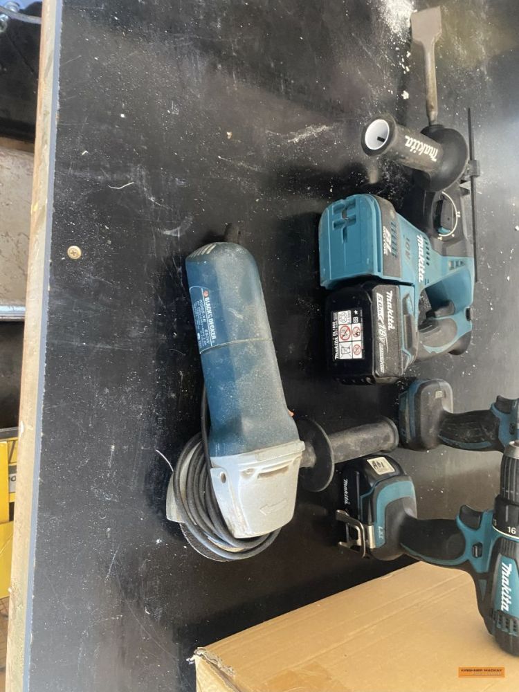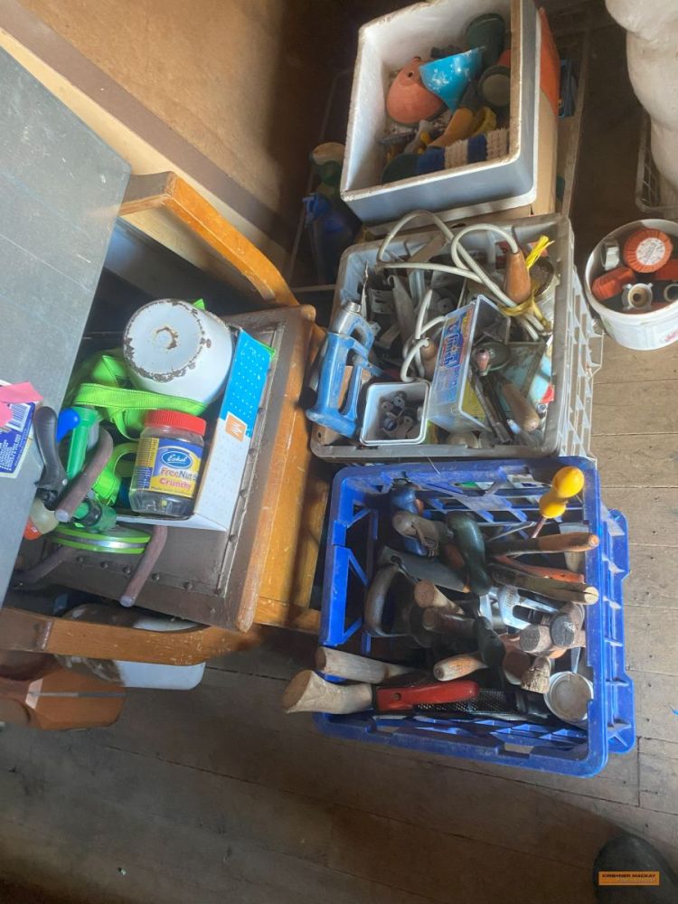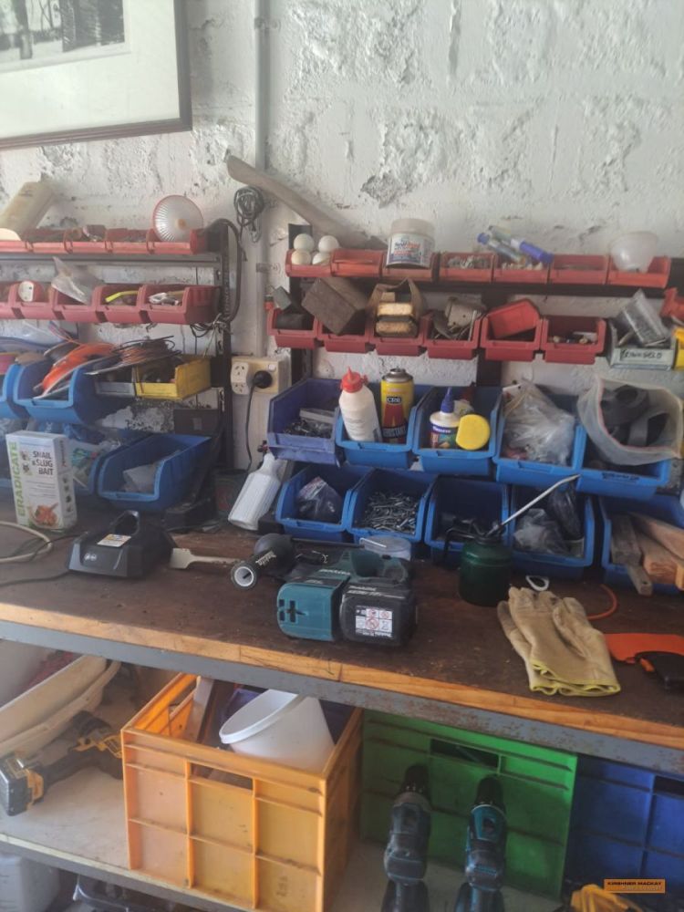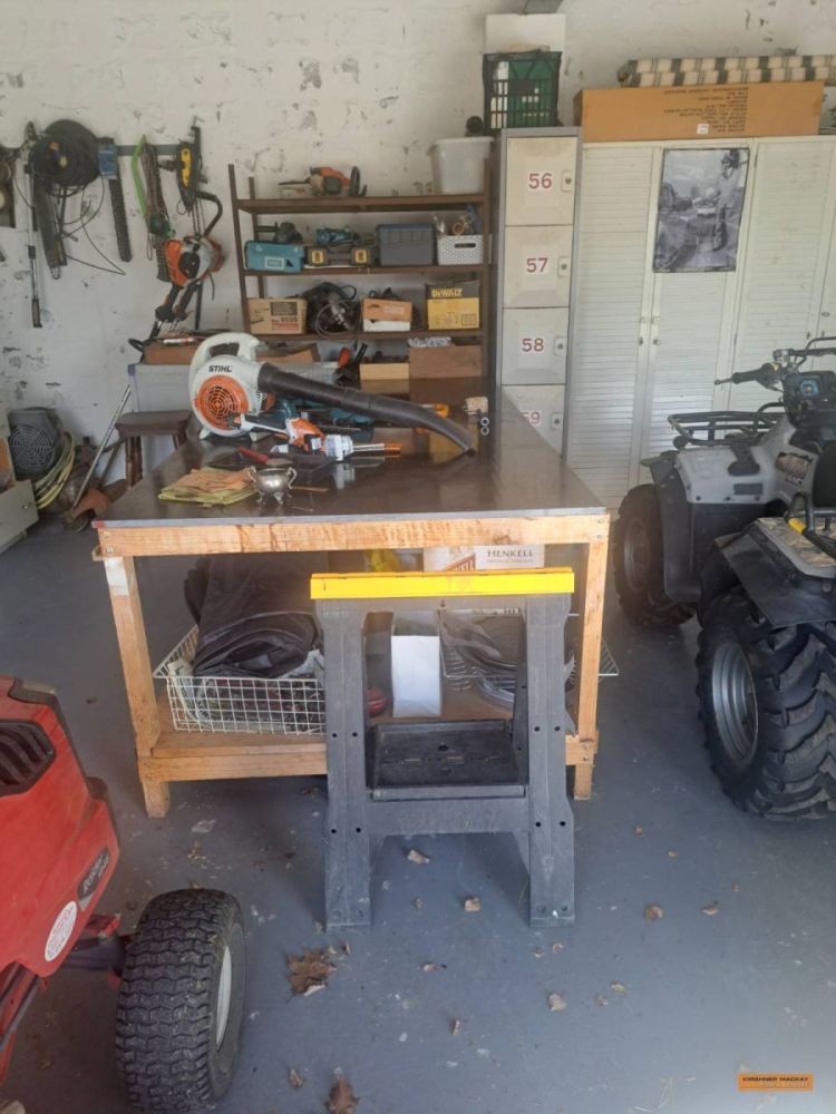Rover ride on mower (approx. 203hr); Suzuki King Quad 300 4WD; Quad bike trailer; Assorted workshop tools & equipment; Qty pinewood; Collapsible Christmas Tree; Various Christmas decorations; Assorted Terracotta pots; 2 x Flexi garden frames; Glass top dining table; Sunair air cooling unit with remote control; 3 Wire protection screens for garden beds; Noaw manual gravity feed slicer; Compact waterproof gold detector; Gold atlas’s; Shredder; Coffee pod machine; Gold pans & sieves; Trolley; Rotary hoe; Edger; Stihl leaf blower; Spray pack; Pedestal fan; Fiskars splitter axe; Jack hammer; Assorted Makita hand tools, battery operated; Red Wing bench grinder; Ryobi table saw; Emco-Rex b20 Thicknesser/planer; Bench vice; Makita bench grinder; Rockwell table saw; DeWalt XR Flex Volt circular saw; DeWalt Circular saw; Assorted sanders; Stihl FS70R whipper snipper; Husqvarna 236 chainsaw; Husqvarna whipper snipper; Stihl HS45 hedge trimmer; Lion Professional 3000 44Ah jump start pack; Storage lockers; Assorted clamps; Fishing tackle box with assorted sinkers, hooks, etc; Endless chain; Electric fence energiser; Assorted drill bits; Spacers; Jerry cans; Assorted battery & cable power tools; |