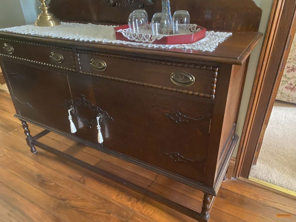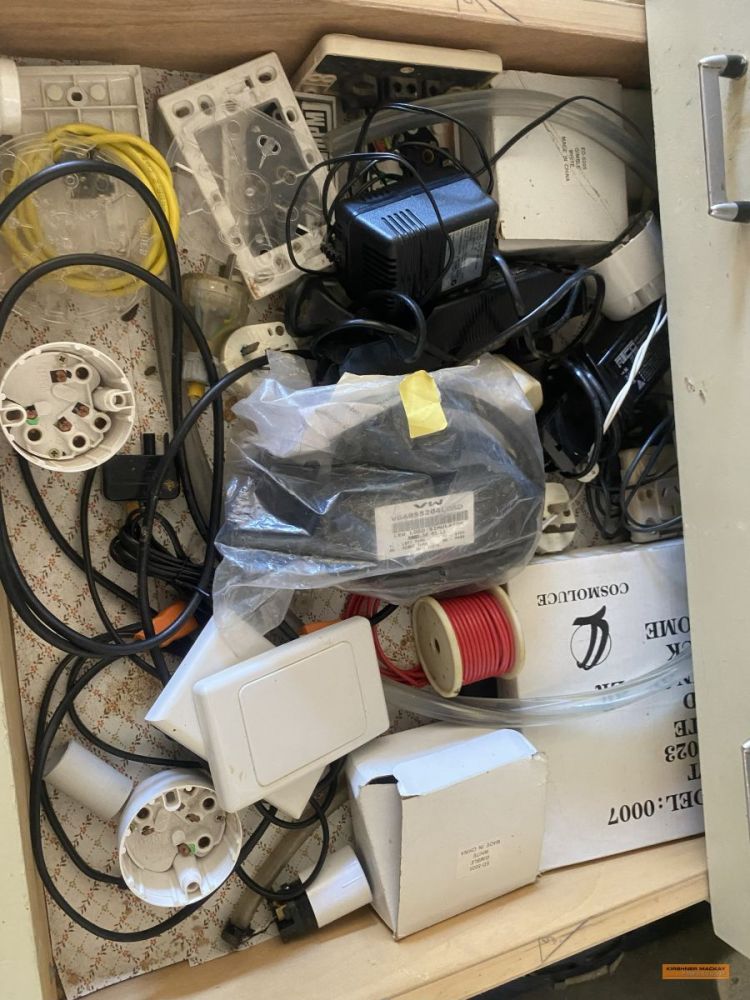 | Household Items | Attributed to Lenehan 7ft Cedar sideboard (Prov. Known); Barley Twist table, 6 chairs & sideboard; Cedar Gentleman’s mirror; Blanket box; Chest drawers; Glass front office cupboard; Horn sewing table; 1920’s Oak dresser, round table & 5 chairs; Timber double slat bed; Singer sewing machine; Assorted bookcases; Upholstered chair, rose wood coloured; 2 x Small rose wood tables with glass top; 2 x 2 drawer filing cabinets; Large chest drawers, painted; Coffee table; 1/2 circle phone table with glass top; Washing machine; Microwaves; Pine hutches; 4 x Older style wardrobes; 3 x Older style dressing tables; Gentleman’s wardrobe, small; Childs desk; Prine bunks; Pine bed, drawers under; Timber office desk, large; Kitchen table; Chairs; Large photocopier; TV unit; 3 x Upholstered chairs; Leadlight glass fronted China cabinet; 2 sets of drawers; Filing cabinet; Fridge; Small freezer; 60cm Bellini oven & cook top; 4 x Remote controlled ceiling fans; Roler blinds & fittings; Multiple sinks; Laundry tubs; Pine single bed with trundle; Kerosene fridge & components; Crossley fridge; Shearers metal frame beds; Kitchen cupboard carcasses; Hot water heaters; Doors; Bench oven with hot plates; Lining boards; Mikasa ‘Silk Flowers’ 8 setting dinner set, plus accessories; Assorted blankets & linen; Pottery dinner set; Baskets; Office items; Cane setting; Mirrors; Assorted books; Record player; Records; Christmas decorations; Kitchen utensils; Crockery; Canteen silver cutlery; Table lamps; |