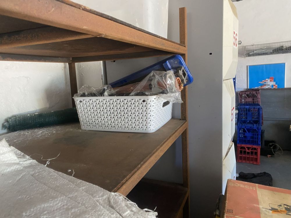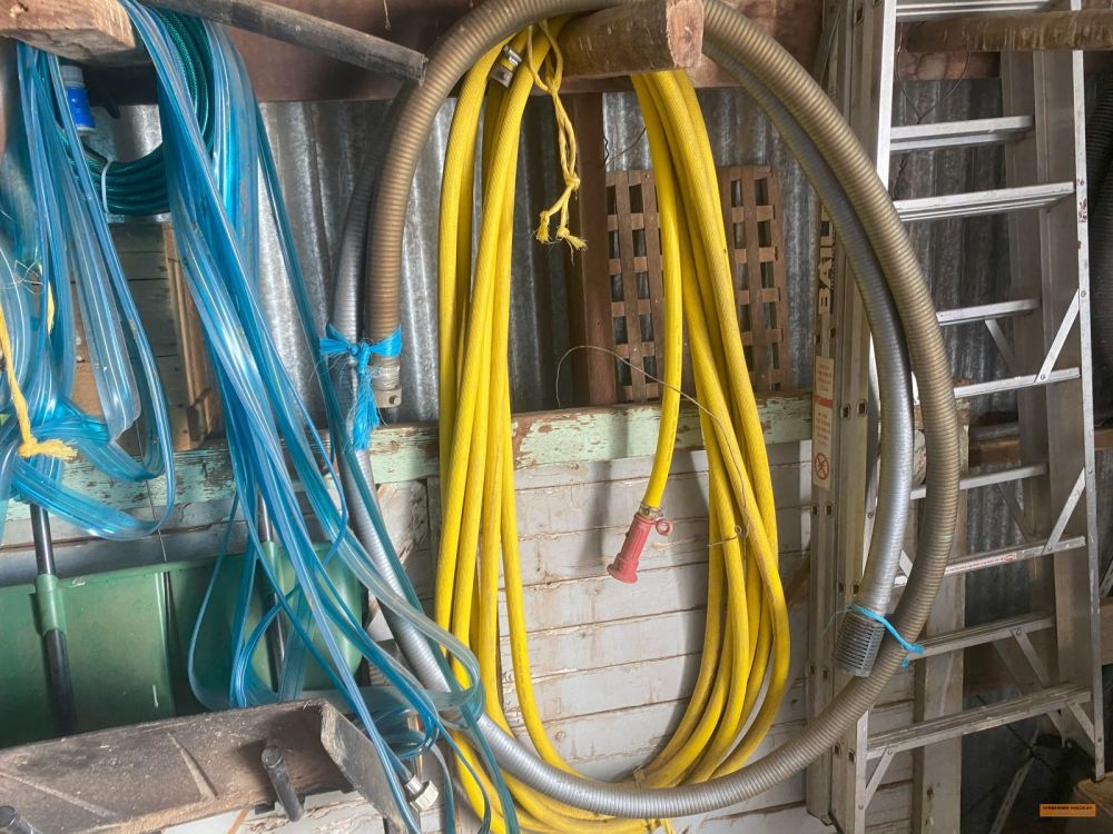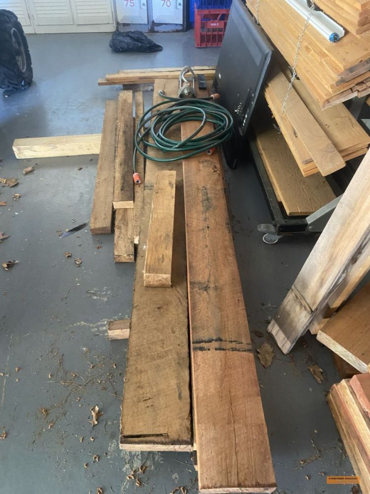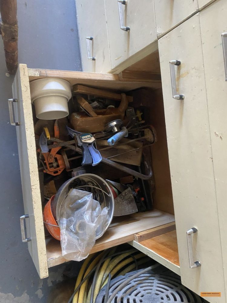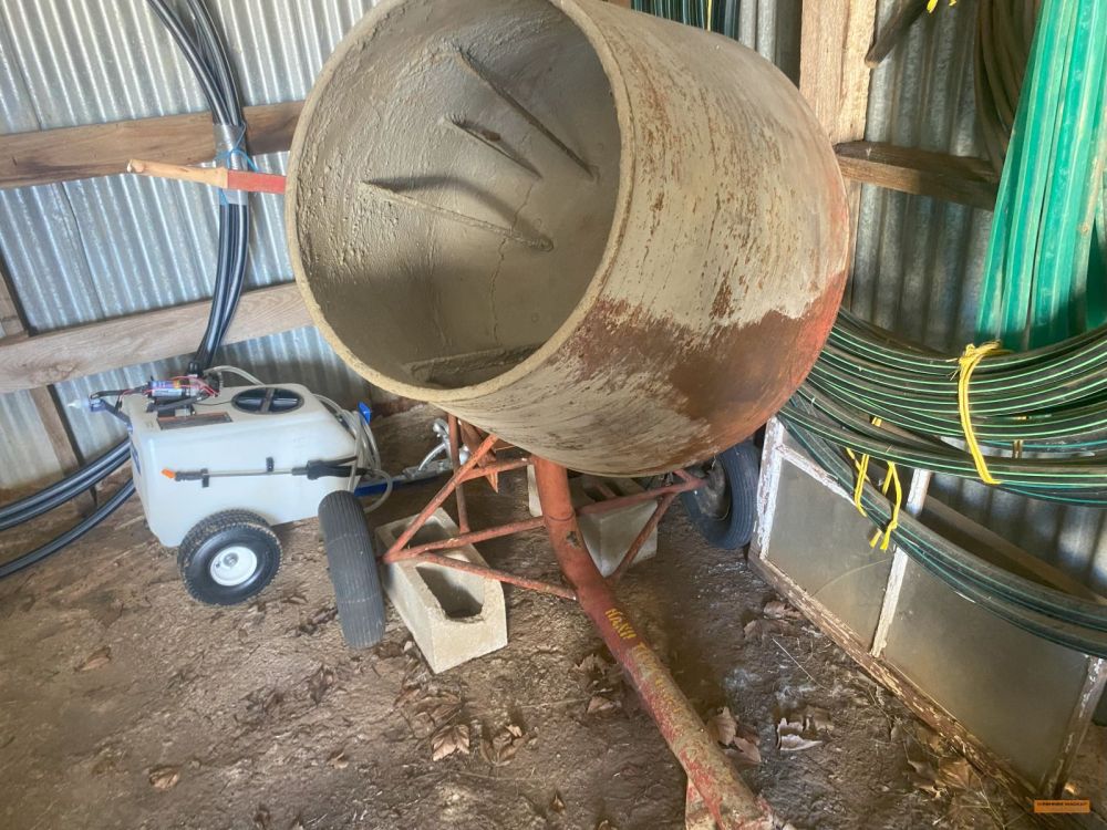 | Building Materials, Workshop Equipment & Tools | 2 x Work benches; Metals frames; Metal shelving; Jerry cans; Cement mixer; Ladders; 100m 15amp power cord; Painters planks; Timber rails; Palings; Poly pipe; Pipe fittings; Pressure washer; Assorted tools; Trolley jack; Scaffolding; |