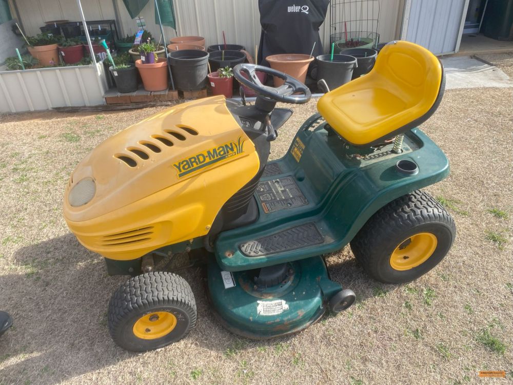 | Outdoor & Garden Equipment | Table; 1/2 table; 6 x Director chairs; Bench; 2 x Large BBQ tables; 3 x Bench seats; Topiary; Garden ornaments; Petrol hedger, blower, whipper snipper; Smoker & wood chips; Large greenhouse, complete; 3 x Wheel barrows; 2 x BBQs; BBQ table & seats; Yardman ride on mower; Honda push mower & catcher; Assorted garden tools; Large marquee; Marquee mats; Marquee weights; Small marquee; Ceramic pots; Plastic pots; Wire ropes; Ropes; Fly & wasp traps; |