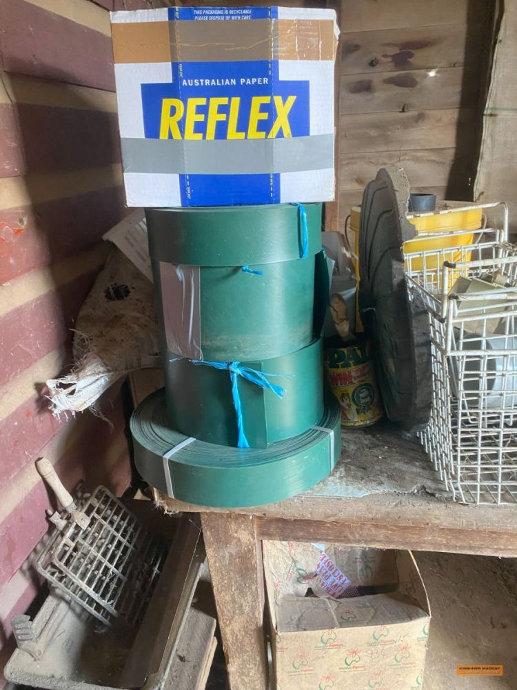 | Farming Equipment & Materials | Sunbeam twin box electric wool press; Green poly water tank; Post hole digger; 4-wheel bike; Bike 50L Kincrome spray unit; 2 x Metal wool classing tables; Wooden wool classing table; Wicker baskets; Large shearers dining table & benches; Spray backpacks; 2 x Cattle grids; Star pickets; Rolls of ring lock; Assorted fencing wire; Wire spinner; Post driver; Tree pusher; |